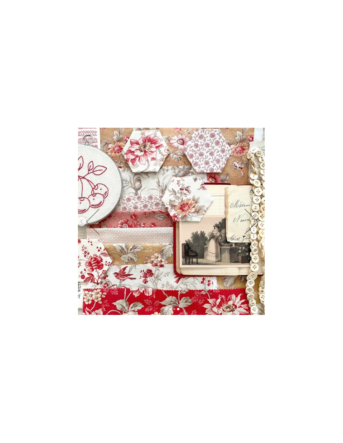 French General a commencé à dessiner des modèles de tissus et de quilt pour Moda en 2008 avec leur première collection, Rouenneries. Depuis lors, Kaari et JZ ont conçu plus de 30 collections et 60 modèles de courtepointe. Remplies de vieux fleurons français, de petits imprimés, de rayures et de bordures, les collections de tissus français d'inspiration générale s'inspirent de documents historiques. Chaque collection présente une nuance de rouge, qui est devenue synonyme de la marque française générale.